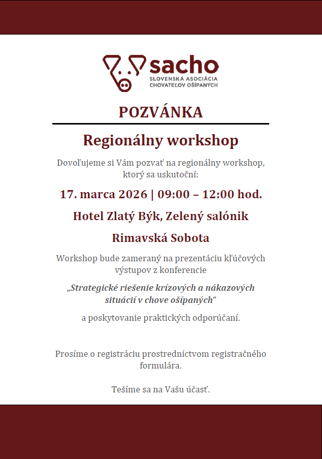 Slovenská asociácia chovateľov ošípaných Vás srdečne pozýva na Odborný regionálny workshop, ktorý sa uskutoční 17. marca 2026 (utorok) od 09:00 hod. (Hotel Zlatý Býk, Zelený salónik, Rimavská Sobota)